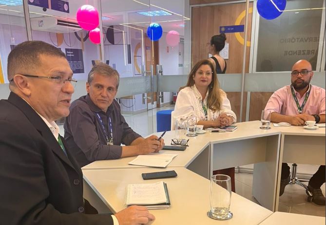 Participaram da reunião o superintendente do IEL, Humberto Rodrigues de Oliveira; a gerente de Estratégia, Organização e Observatório Fieg, Sandra Marcia Silva; a chefe do PMO, Lidia Fraiz; o coordenador de Inteligência de Dados, Ulisses Remmy; e a gerente de Inovação da Codego, Nubiane Fortuna.