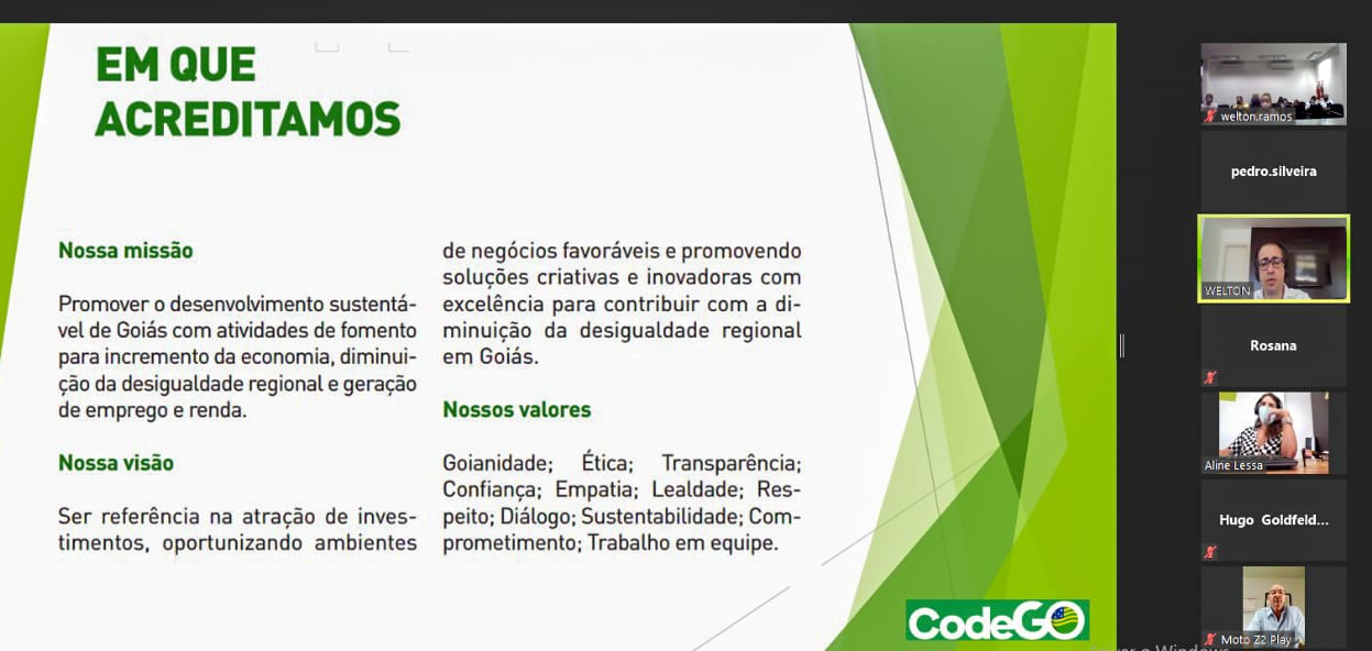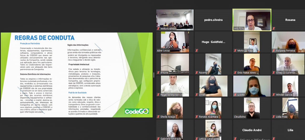 A Companhia de Desenvolvimento Econômico de Goiás (Codego) lançou oficialmente nesta quinta-feira (3/12) o seu novo Código de Ética e Conduta, aprovado pelo Conselho de Administração da estatal. Por videoconferência, o presidente da Companhia, Hugo Goldfeld, e o diretor administrativo, Rafael Rocha de Macedo, apresentaram o conteúdo do documento e esclareceram dúvidas dos colaboradores.