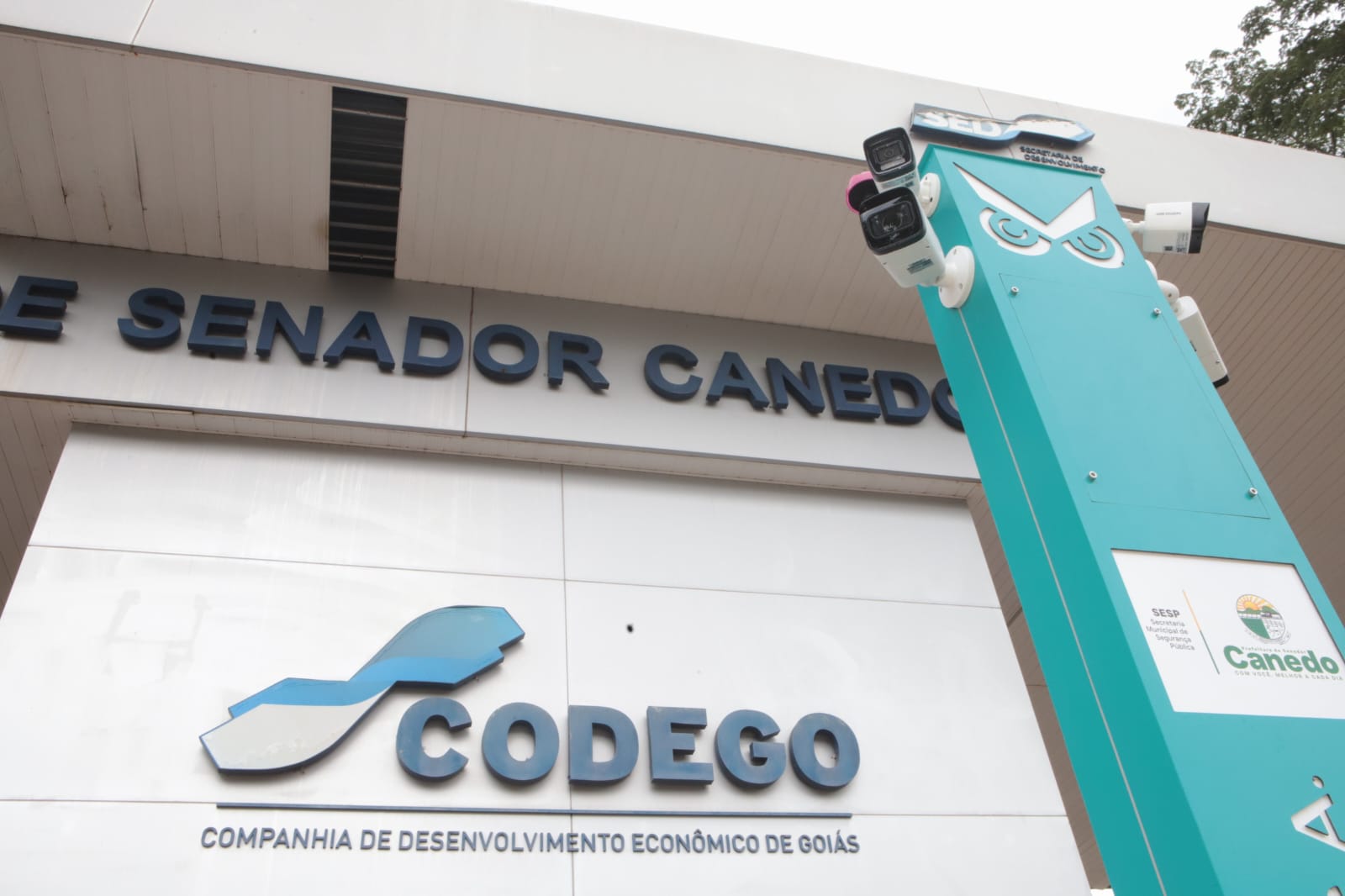 O primeiro distrito a receber o sistema foi o de Senador Canedo, onde os totens de videomonitoramento já estão em funcionamento desde o dia 15 de março. O projeto-piloto foi desenvolvido em parceria com a Prefeitura de Senador Canedo e a empresa Tutor, que forneceu os equipamentos – estruturas verticais equipadas com sistemas de vigilância e comunicação, incluindo tecnologia de reconhecimento facial e identificação de placas de veículos.