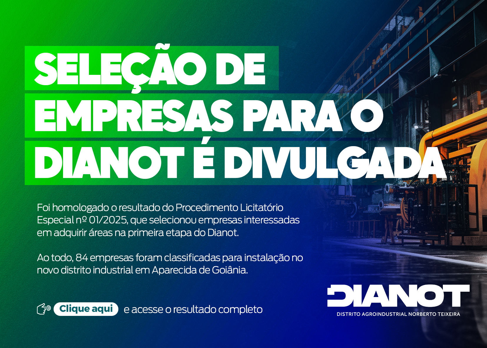 intenção para a instalação de 24 novas empresas em Goiás. Elas serão instaladas