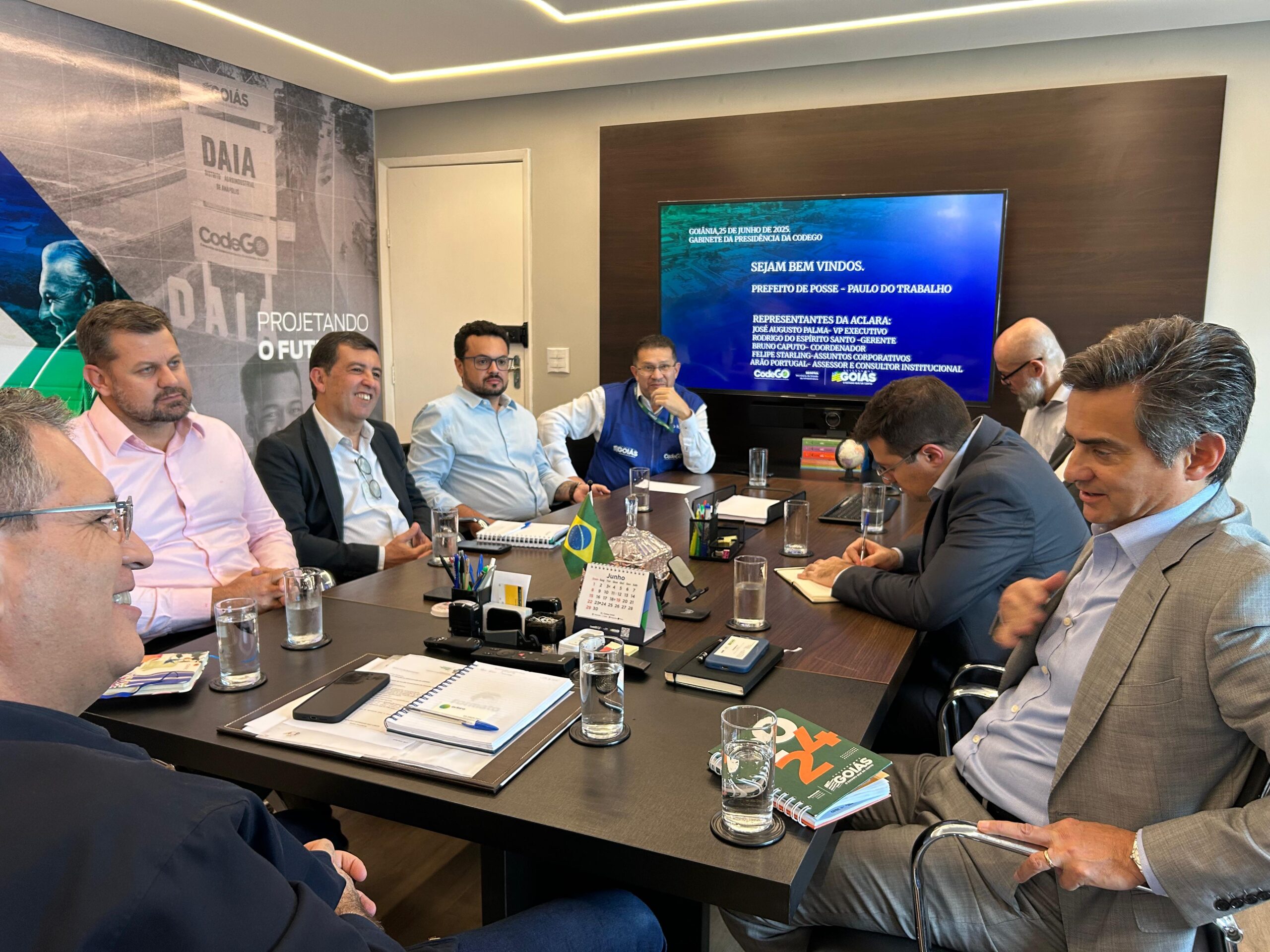 Em reunião realizada na tarde desta quarta-feira (25), o presidente da Companhia de Desenvolvimento Econômico de Goiás (Codego), Francisco Jr., o superintendente de Projetos e Novos Negócios, Paulo Araújo, e demais integrantes da companhia, se reuniram com o prefeito de Posse, Paulo do Trabalho, e com o executivo da mineradora Aclara Resources, José Augusto Palma, para discutir a criação de um distrito industrial no município. O objetivo é atrair novas empresas e indústrias que possam atender à mineradora e fomentar todo o ecossistema produtivo da região.